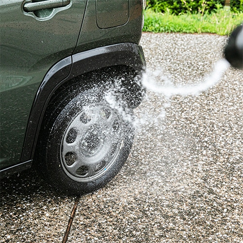●洗車・清掃に適した4水形(サイクロン・ジェット・フラット・整流)。サイクロン水流でジェットの勢いのまま広範囲も簡単清掃。勢い重視から範囲重視まで、さまざまなシチュエーションに対応。