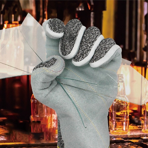 手のひら部分に革を重ね、優れた耐切創レベルを実現!