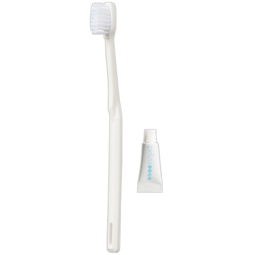 商品仕様 | ●全長/約160mm ●材質/ハンドル:ポリプロピレン、植毛:PBT、植毛(毛先加工):フラット加工 ●その他仕様/●歯磨き粉付 ●個包装 |