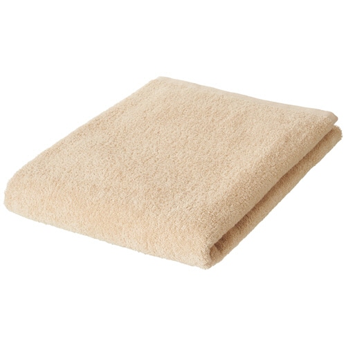 ●ヘムを三角縫いにすることで耐久性アップ。ベージュの超大判バスタオルです。