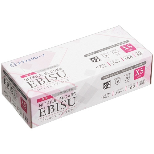 アマノ ニトリルグローブ エビス パウダーフリー XS ブルー AM-CF880 1箱(100枚)