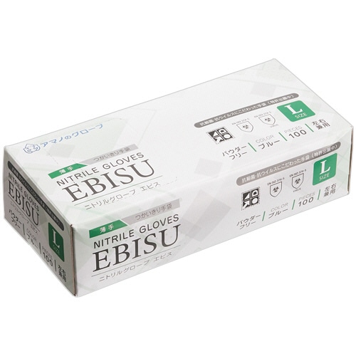 アマノ ニトリルグローブ エビス パウダーフリー L ブルー AM-CF883 1箱(100枚)