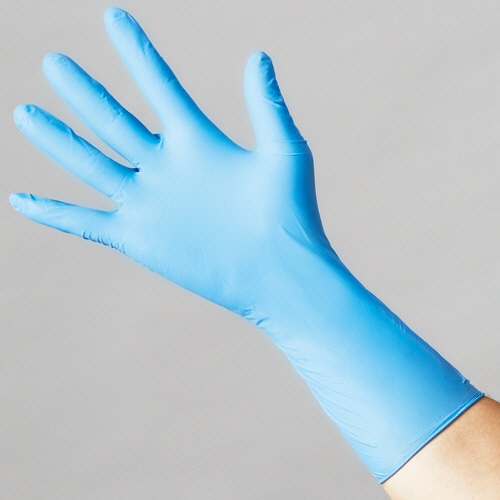 【食品衛生法適合】強度に優れた厚手タイプ。ロングサイズのニトリル手袋。