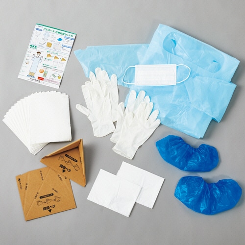 | 商品仕様 | ●その他仕様/●汚物処理セットN ●パック内容:汚物処理マニュアル(1枚)、使い捨てエプロン長袖(親指フックタイプ)(1枚)、使い捨てマスク(1枚)、高吸収シート10組(1組4枚重ね)、使い捨て手袋(2双)、回収ヘラ(紙製)(2枚)、ポリ袋(2枚)、使い捨て靴カバー(1足) |