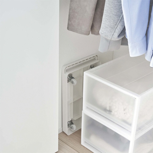 商品仕様 | ●積載荷重/約100kg ●寸法/W280×D450×H65mm ●自重/約1kg ●材質/本体:ポリプロピレン、キャスター:スチール(ユニクロメッキ)・ナイロン ●キャスター材質/ナイロン ●色/ホワイト ●その他仕様/●天板寸法:約W270×D405×H45mm ●必要工具:プラスドライバー |