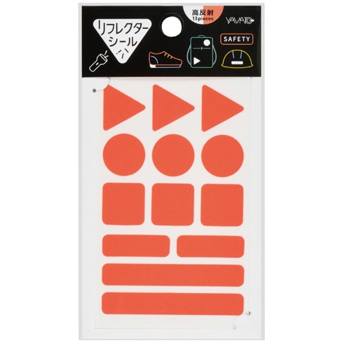 | 商品仕様 | ●色/ネオンオレンジ ●材質/シール:ポリエステル・ウレタン樹脂・ガラスビーズ、粘着剤:アクリル系 ●その他仕様/●シール合計片数:13片 ●シール寸法:[三角形]17.2×19.5mm、[円形]Φ17.6mm、[四角形]17.6×17.6mm、[長方形(小)]28×9mm、[長方形(大)]59×9mm ●品 種/反射シール |
