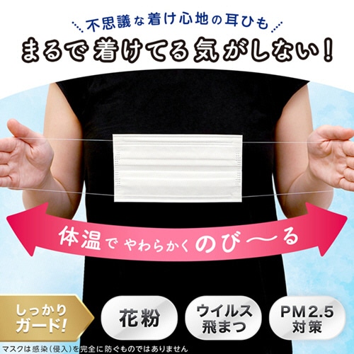 ●見た目も目立ちにくく、まるで着けてる気がしない不思議な着け心地なふつうサイズのふわるんNマスクです。色はホワイトの30枚入り。