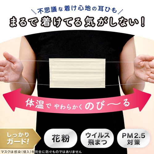 ●見た目も目立ちにくく、まるで着けてる気がしない不思議な着け心地なふつうサイズのふわるんNマスクです。色はベージュの30枚入り。