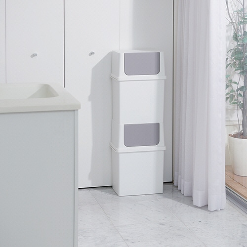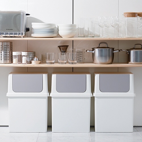 ●並べる、積み重ねるなど、複数個使いがしやすい、容量17Lのワイドダストボックス。ホワイトです。