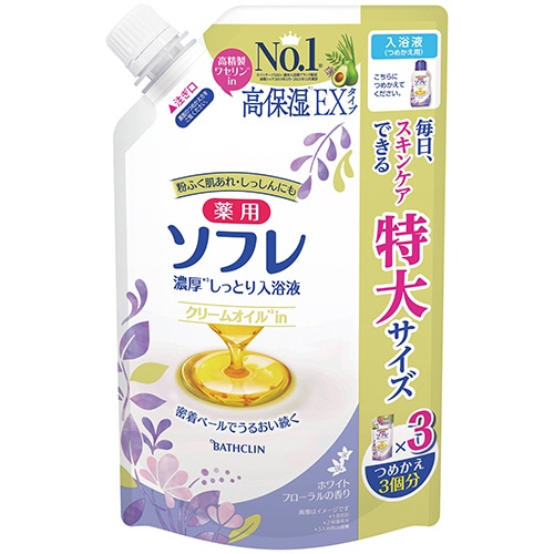 バスクリン 薬用ソフレ 濃厚しっとり入浴液 ホワイトフローラルの香り つめかえ用大容量 1200mL 1パック