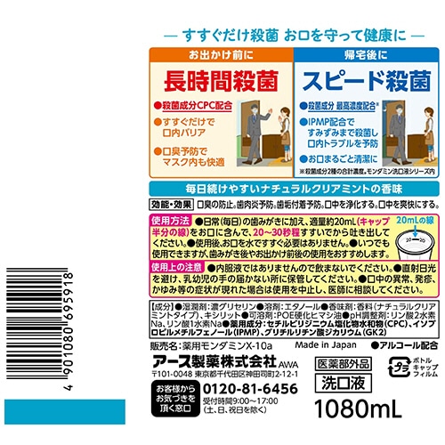 アース製薬 モンダミン 口内バリア 1080ml 1本