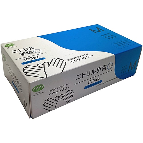 ●Mサイズのニトリル手袋・パウダーフリータイプ、ブルー100枚入りです。