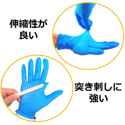 商品仕様 | ●サイズ/L ●寸法/全長235±5×手のひらの幅×中指長さ85±5mm ●手のひら周り/110±5mm ●厚さ/約0.06mm ●滅菌/未滅菌 ●パウダー有無/なし ●食品衛生法/適合 ●左右兼用/兼用 ●色/ブルー ●材質/ニトリルゴム ●備考/※厚さは手の平部分 |