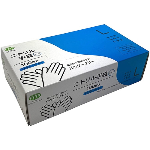 ●Lサイズのニトリル手袋・パウダーフリータイプ、ブルー100枚入りです。
