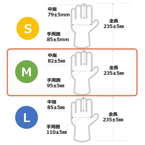 商品仕様 | ●サイズ/M ●寸法/全長235±5×手のひらの幅×中指長さ82±5mm ●手のひら周り/95±5mm ●厚さ/約0.06mm ●滅菌/未滅菌 ●パウダー有無/なし ●左右兼用/兼用 ●色/ナチュラル ●材質/ポリ塩化ビニール ●備考/※厚さは手の平部分 |
