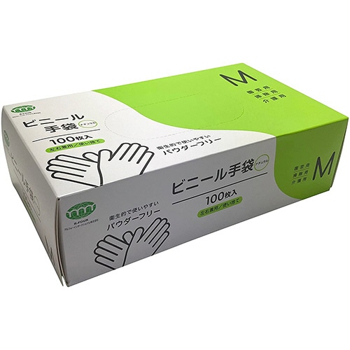 ●Mサイズのビニール手袋・パウダーフリータイプ、100枚入です。