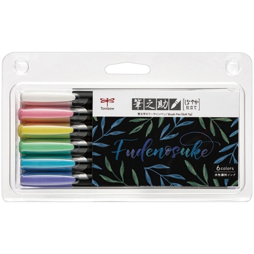 【使いきりタイプ】黒い紙(濃い色の紙)にも描ける!パステルカラー6色の筆文字サインペンセット。