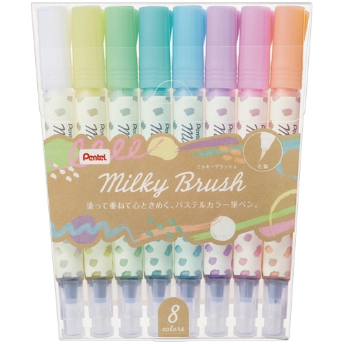 ぺんてる ミルキーブラッシュ 8色(各色1本) GFH-P8ST 1パック