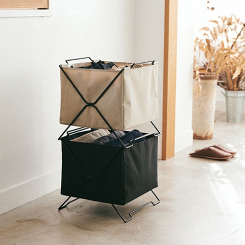 折りたためてスタッキングもできるバスケット