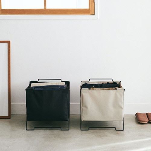 ●一時置きや投げ込み収納にピッタリな「スタックバスケット」。色はベージュです。