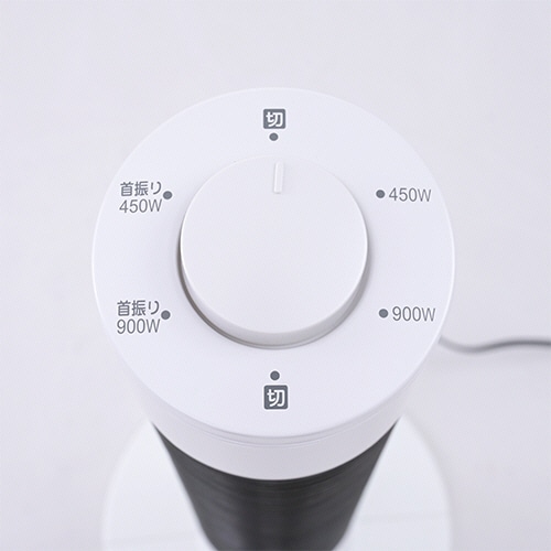 商品仕様 | ●消費電力/900W ●首振角度/約70°(自動・手動) ●転倒OFF機能/あり ●電源ケーブル長さ/約1.5m ●寸法/W約300×D300×H840mm ●重量/約2.8kg ●色/ホワイト ●その他仕様/●運転切替:2段階(450/950W) ●保証期間/1年 |