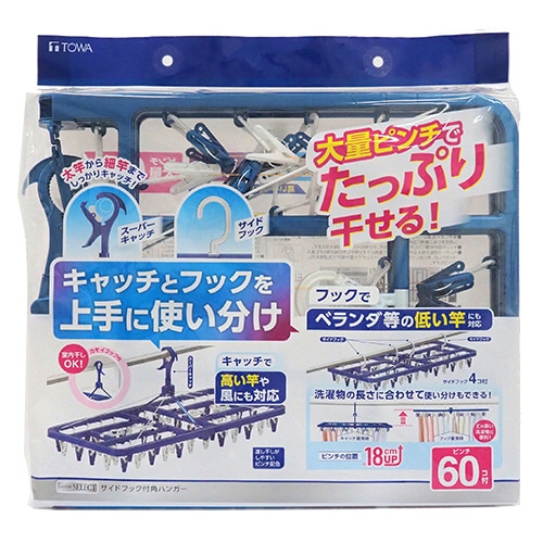 東和産業 LST サイドフック付角ハンガー ピンチ60個付 ブルー 1個