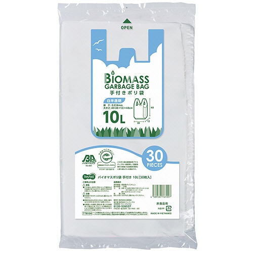 TANOSEE バイオマスポリ袋 手付き 白半透明 10L 1パック(30枚)
