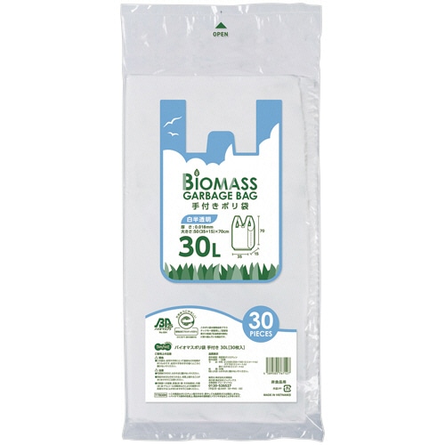 TANOSEE バイオマスポリ袋 手付き 白半透明 30L 1パック(30枚)
