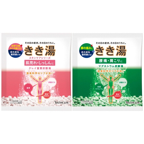 | 商品仕様 | ●香り/カルシウム炭酸湯:ラムネの香り、マグネシウム炭酸湯:カボスの香り、カリウム芒硝炭酸湯:はちみつレモンの香り、食塩炭酸湯:潮騒の香り、クレイ重曹炭酸湯:湯けむりの香り、ミョウバン炭酸湯:リーフの香り ●内容量/30g ●色/カルシウム炭酸湯:青空色(透明タイプ)、マグネシウム炭酸湯:青緑色(透明タイプ)、カリウム芒硝炭酸湯:レモン色(透明タイプ)、食塩炭酸湯:乳緑色(にごりタイプ)、クレイ重曹炭酸湯:乳白色(にごりタイプ)、ミョウバン炭酸湯:すみれ色(透明タイプ) ●セット内容/カルシウム炭酸湯(6包)・マグネシウム炭酸湯(6包)・カリウム芒硝炭酸湯(6包)・食塩炭酸湯(6包)・クレイ重曹炭酸湯(6包)・ミョウバン炭酸湯(6包)×各3箱、紙什器、POP、説明書 ●その他仕様/●分包タイプ ●備考/※内容量は1包あたり。 ※販売名:きき湯リセットDA-a、きき湯リセットBA-a、きき湯リセットEA-a、きき湯リセットCA-a、きき湯リセットAA-a、きき湯リセットFA-a ●シリーズ名/きき湯 |