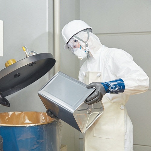 | 商品仕様 | ●サイズ/M ●全長/約30cm ●中指長さ/約7.6cm ●材質/樹脂部:合成ゴム(ニトリルゴム)、繊維部:ポリエステル ●色/ブルー ●すべり止め付/○ ●品 種/耐薬品手袋 ●サ イ ズ/M |