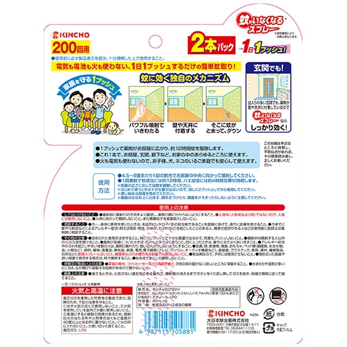大日本除蟲菊 KINCHO 蚊がいなくなるスプレー 200回 無香料 1パック(2本)