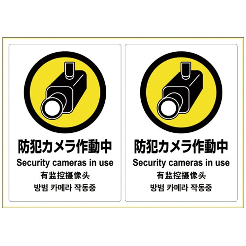 ●「防犯カメラ作動中」のサインステッカー、 A4横・2面です。
