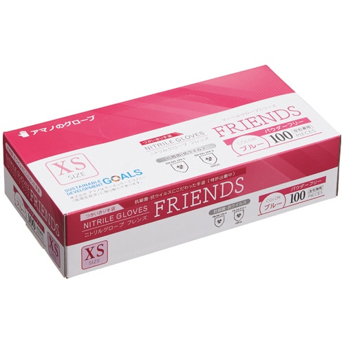 アマノ ニトリルグローブ フレンズ パウダーフリー XS ブルー AM-CF591 1箱(100枚)