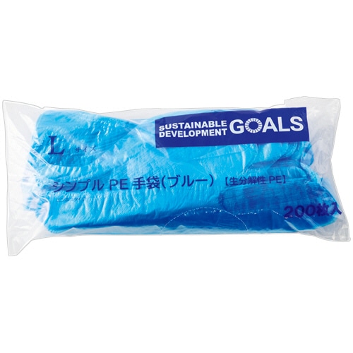 アマノ シンプルPE手袋 L ブルー(生分解性PE) AM-CF512 1パック(200枚)