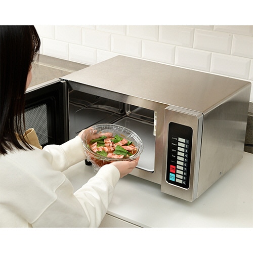10のメモリー調理が可能なシンプルで使いやすい操作部の業務用電子レンジ