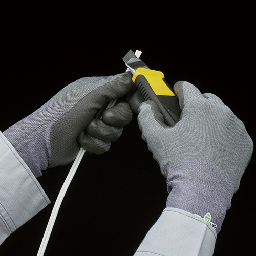 指先までしっかりフィットし、作業性に優れたポリウレタンコートの耐切創手袋(耐切創レベル:X/D)