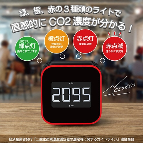 ●CO2濃度を検知して換気のタイミングをライトとブザーでお知らせ。