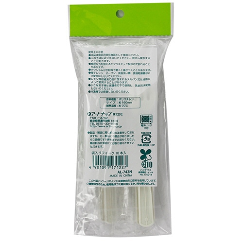アートナップ 使い切り食器 袋入フォーク 約160mm AL-742 1パック(10本)