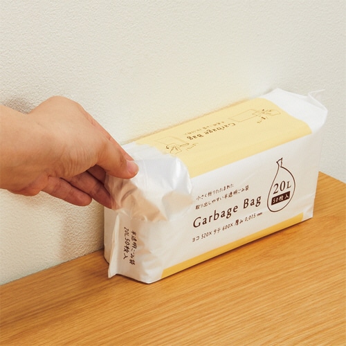 ●開口部が角にあり1枚ずつ取り出しやすい半透明のゴミ袋、容量は45L・50枚パックです。