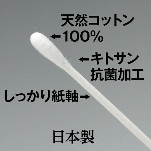 ●天然コットン100%・キトサン抗菌加工・しっかり紙軸でベトベト耳あかに。仕上げにもおすすめ。