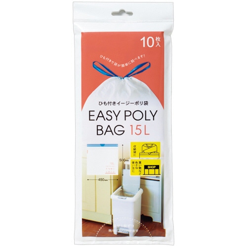 ●ひも付きイージーポリ袋、15L・10枚入り。