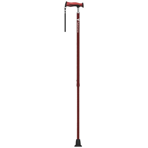 商品仕様 | ●種類/伸縮式 ●全長/68~96cm ●調節/25mmきざみ・12段階 ●色/ワインレッド ●重量/310g ●材質/本体:アルミニウム、グリップ:TPR・PP ●その他仕様/●対応身長(目安):130~186cm ●杖先ゴム直径:約5cm |