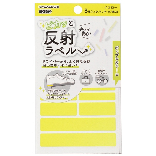 カワグチ ピカッと反射ラベル イエロー 10-072 1パック(8枚)