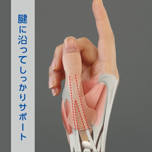 曲げると痛い親指をしっかり固定する腱鞘用サポートテープ。