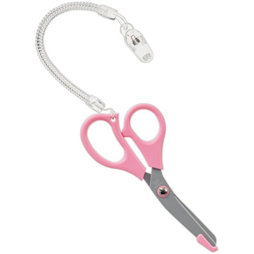 ●フッ素加工で切れ味抜群。左利き用ハサミ、色はピンクです。