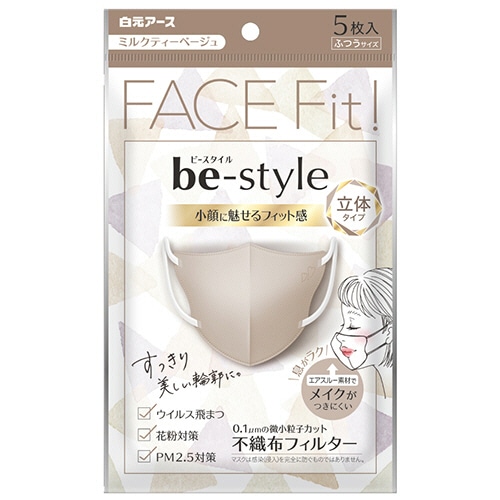 白元アース ビースタイル 立体タイプ ふつうサイズ ミルクティーベージュ 1パック(5枚)