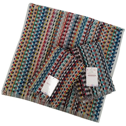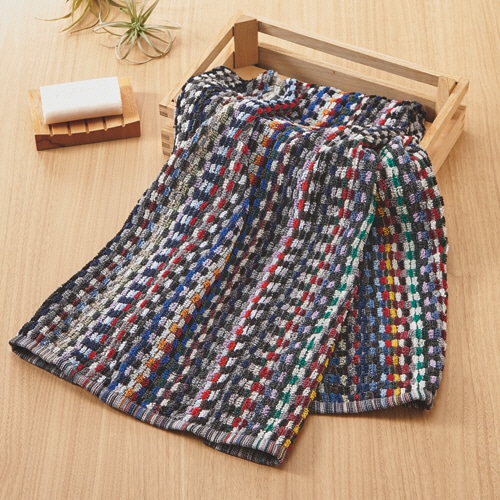 残り糸を集めて織り上げた、エコでカラフルなコンパクトバスタオル
