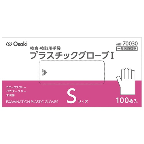 オオサキメディカル プラスチックグローブI S 1箱(100枚)