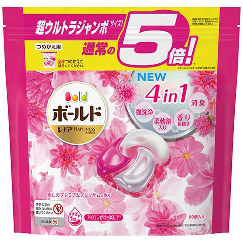 P&G ボールド ジェルボール 4D 癒しのプレミアムブロッサムの香り つめかえ 超ウルトラジャンボサイズ 1パック(60個)