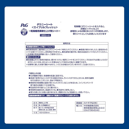 ●乾燥機用柔軟仕上げ剤シート。春の太陽のようなエイプリルフレッシュの香り、120枚入です。